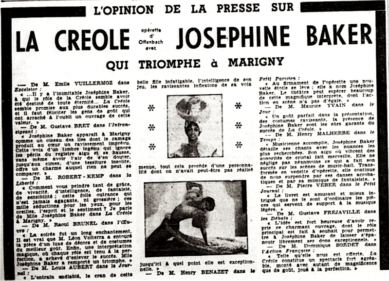 • Andy Fry, Du jazz hot à "La Créole"': Josephine Baker Sings Offenbach, Cambridge Opera Journal, Vol. 16, No. 1 (Mar., 2004), pp. 43-75 (Cambridge University Press).