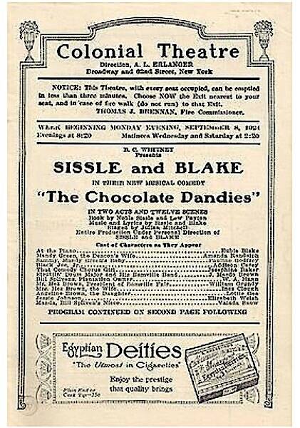 C'est dans cette production conçue par Lew Payton, Noble Sissle et Eubie Blake que J. B. fit ses débuts à Broadway…