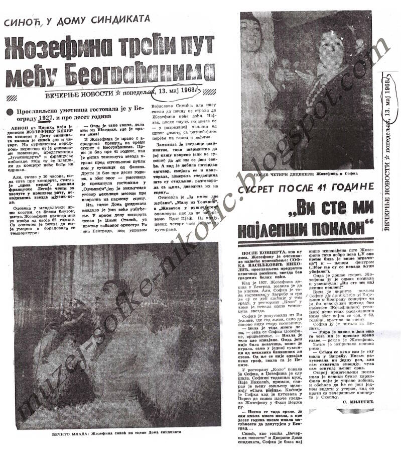 « Early one evening last week the manager of the Zagreb Narodno Kazalista peeked nervously through the curtain, and noticed that the theatre was half-filled with students from the Zagreb Technical College. There was nothing surprising in this, for on the stage of the Zagreb Narodna Kazalista, usually the home of grand opera and classic drama, that slick-haired, honey-colored Harlem Negress. Josephine Baker, was due to appear. What worried the manager was the lack of welcome in the mien of the young Croatian technicians. When la Backaire, as most of Europe calls her, started to dance, her nubile body girdled with a zone of ripe bananas, the manager's worst fears were realized.