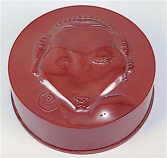• Boîte à poudre en bakélite, créée par Adelaine Grey, Art Déco.