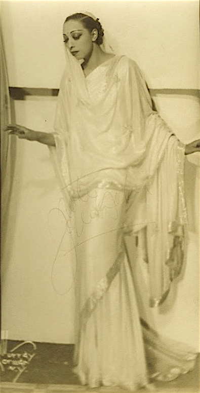 1935, J. B. portant le sari inspiré à Schiaparelli